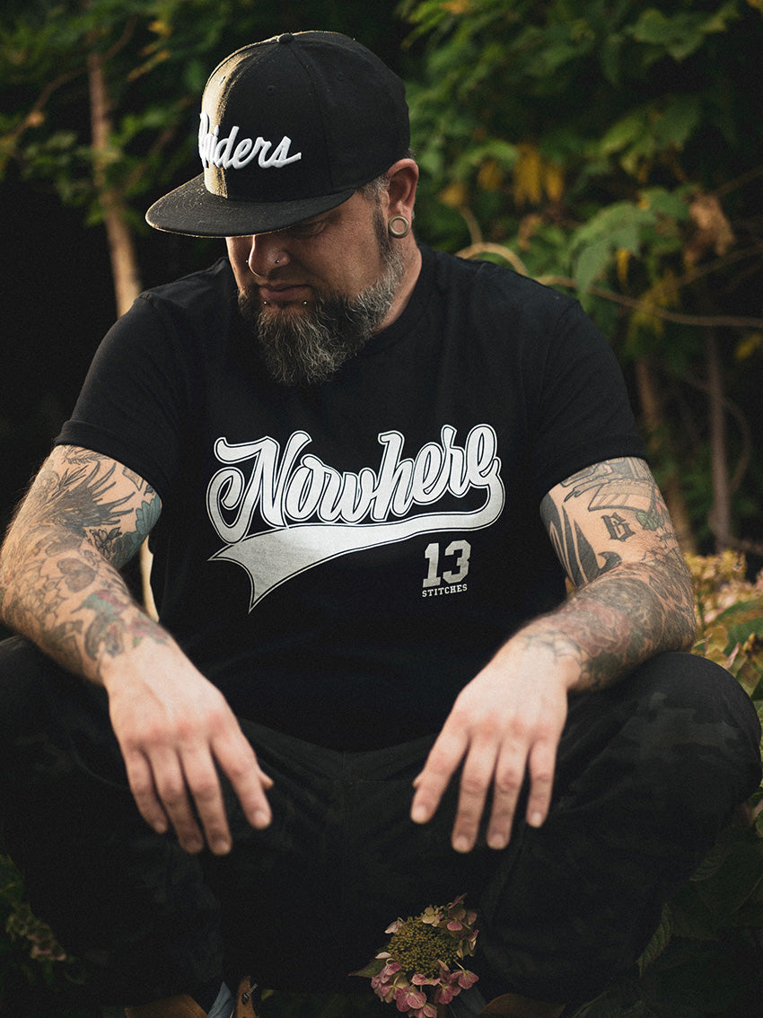 Das Baseball Team aus NOWHERE ist wirklich eine abgeranzte Truppe. Tätowiert, gepierct und immer leicht angetrunken ist besonders der Spieler mit der Nummer 13 extrem verhaltensauffällig - aber auch der Publikumsliebling! Unterstütze mit dem NOWHERE Shirt diese symphatische Gurkentruppe.